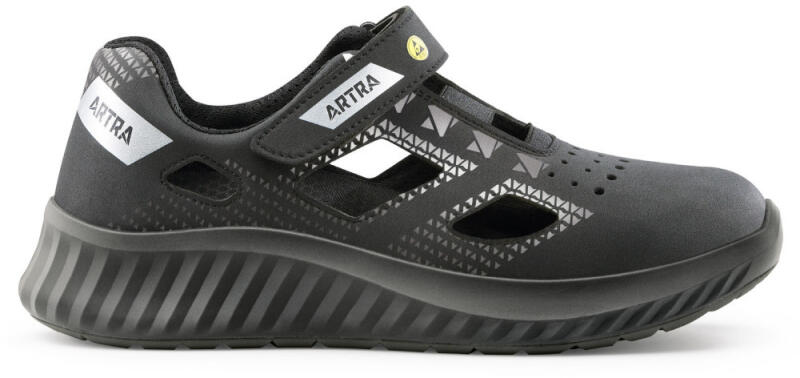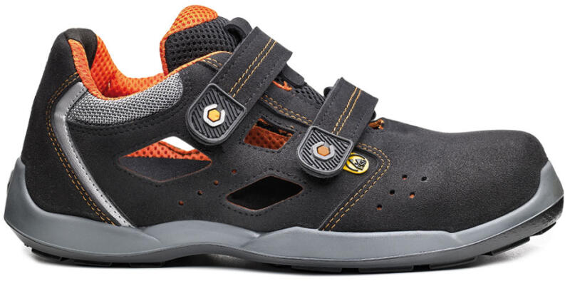 Jól szellőző kényelmes ESD-s munkavédelmi szandál hidrofób mikroszálas nubukbőr felsőrésszel, anatómiailag széles kialakítású acél orrmerevítővel és kevlár talpátszúrás elleni védőlemezzel. Felsőrész A cipő felső része hidrofób mikroszálas 2.2 mm vastag NUBUCK PRO nubuk bőrből készült, mely kiváló ellenállóképességet biztosít, valamint jó légátereszt