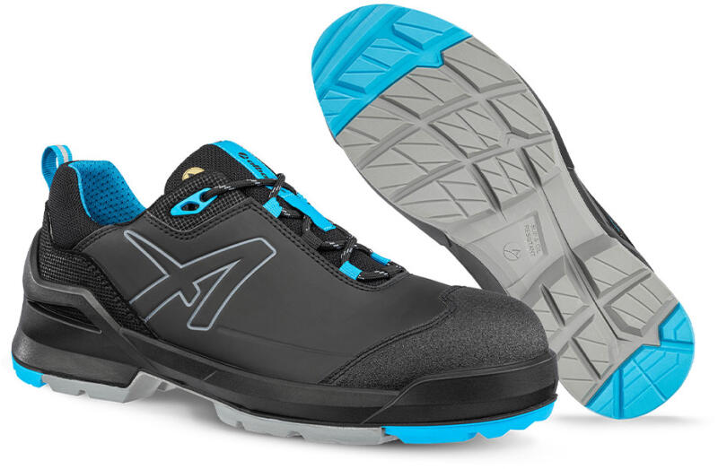 A feltűnően könnyű és ergonomikus talp különböző méretű sarkakkal ellátott és ívelt barázdákkal biztosítja az optimális folyadékkiszorítást és támogatja a természetes gördülési mozgást. Kopásálló TPU betétekkel van felszerelve, ami az igénybevételnek kitett területeken is helyt áll. A megerősített boltozat biztos tapadást biztosít, különösen ipari padlók