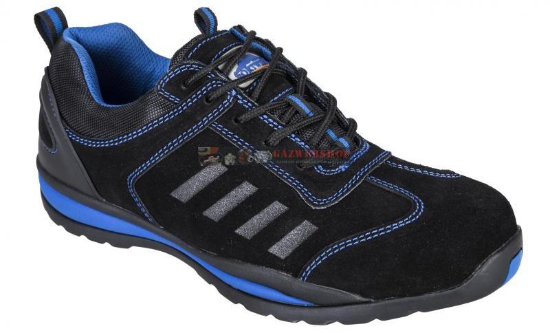 KÉK VELÚRBŐR FÉLCIPŐ/KÉK SZÖVET/ACÉL TALPLEMEZ MODELLCSALÁD JELLEMZŐI: Strapabíró és kényelmes védőlábbelik acél kaplival és talplemezzel. TALP: Kétrétegű poliuretán talp. Csúszásmentes kialakítás (SRC), energiaelnyelő sarokrész (E), antisztatikus tulajdonságok (A), szénhidrogénekkel (pl. olajjal) szembeni ellenállás. KÉNYELMI TALPBETÉT: EVANIT anatómiai kialak