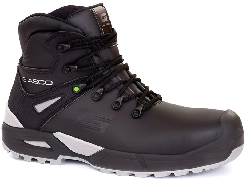 Biztonsági magasszárú bakancs orrvédővel, acél lábujjvédővel és átszúrás ellen védő köztalppal. Antisztatikus, csúszásbiztos, üzemanyagálló, nagy sűrűségű PU talp, energiaelnyelő sarokkal. Vízlepergető marhabőr felsőrész. Fényvisszavető kiegészítők Energiaelnyelő sarok Csúszásbiztos talp Vízálló felsőrész Biztonsági orrmerevítő Acél átszúrás ellen