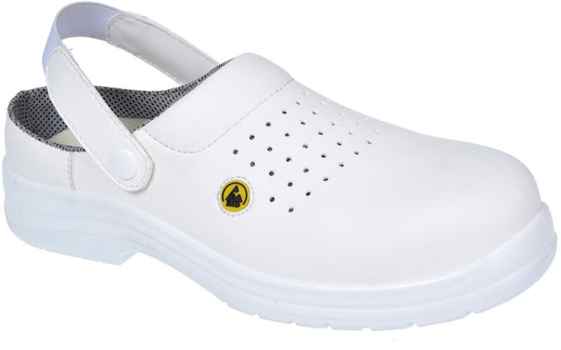 Könnyű biztonsági klumpa perforált felsőrésszel a további légáteresztő képesség érdekében. 100% fémmentes, műanyag szegecses rögzítővel. Alkalmas ESD környezetben történő használatra Megfelel az EN 61340-5-1 szabványnak. Slip-on sziluett Állítható rugalmas sarokpánt Perforált felsőrész segíti a légáramlást meleg környezetben Törölje le a felső részt Öntisz