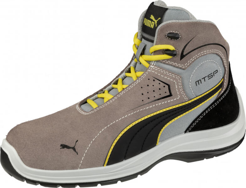 PUMA Safety MOTO PROTECT munkavédelmi cipőHidrofóbizált velúr bőr felsőrész. Üvegszálas orrmerevítő és hajlékony kerámiaszálas (FAP®) talpközép. BreathActive funkcionális bélés. Evercushion® plus talpbetét. MOTO PROTECT csúszásmentes DUO-PU-talp, MTSP csavarodásgátló rendszerrel és DRIVERS HEEL kerekített sarokrésszel. Fémmentes, boka ízületnél megerősített te