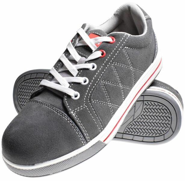 Kiváló minőségű, acél orrmerevítős és fóliás biztonsági cipő, amely védi a lábat a nehéz tárgyak vagy szúrás okozta sérülésektől. Velúr bőr és szövet kombinációjából készül. A talp tartós, mély bordázatú PU anyagú, amely megakadályozza a csúszást. Ugyanakkor természetesen alkalmazkodik a láb mozgásához, így a cipő nemcsak biztonságos, hanem kényelme