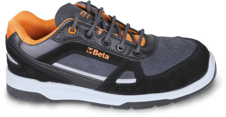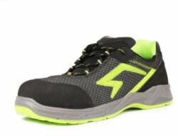Sportos munkavédelmi cipő hidrofób mikroszálas nubuk bőr felsőrésszel és kiváló légáteresztő képességgel. Felsőrész A cipő felső része hidrofób mikroszálas 2.2 mm vastag NUBUCK PRO nubuk bőrből készült, mely kiváló ellenállóképességet biztosít, valamint jó légáteresztő képességgel rendelkezik, így egész napos viselésre is kiválóan alkalmas. A cipő fém