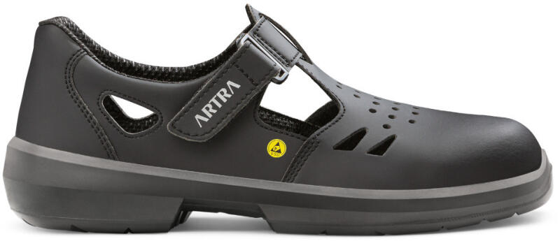Kényelmes ESD-s munkavédelmi szandál kompozit orrkaplival és kevlár talpárszúrás elleni védőlemezzel, hidrofób mikroszálas bőr felsőrésszel és memóriahabos légáteresztő talpbetéttel. 100% fémmentes kialakítás. Felsőrész A cipő felső része hidrofób mikroszálas 2.2 mm vastag INDUSTRY PRO bőrből készült, mely kiváló ellenállóképességet biztosít, valamint jó
