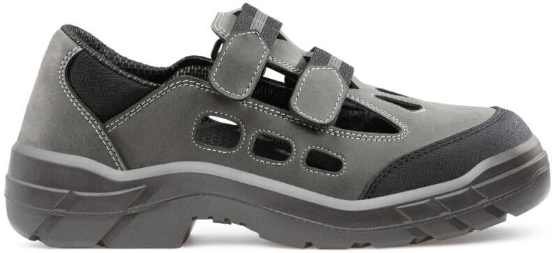 Acél orrkaplival rendelkező kényelmes munkavédelmi szandál hidrofób mikroszálas nubukbőr felsőrésszel, a szandál orrán kopásálló SHIELD PRO réteg található. Jó légáteresztő képességgel és memóriahabos talpbetéttel rendelkezik. Felsőrész A cipő felső része hidrofób mikroszálas 2.2 mm vastag NUBUCK PRO nubuk bőrből készült, mely kiváló ellenállóképességet