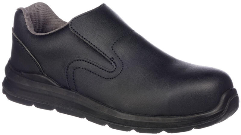 Ez a fémmentes, fűzős, mircofibre biztonsági tréner antimikrobiális bélést, talpbetétet és letörölhető felsőrészt kínál. A könnyen tisztítható felületet a felcsúsztatható kialakítás segíti, csökkentve ezzel a szennyeződés lehetőségét. Tökéletes az élelmiszeripar, a gyógyszeripar, a vendéglátás és a vendéglátóipar számára. Párnázott cipőnyelv a nagyob