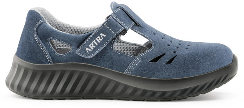 Kényelmes, jól szellőző munkavédelmi szandál hidrofób mikroszálas marha velúrbőr felsőrésszel. A lábujjak védelméről széles, anatómiai kialakítású acél orrkapli gondoskodik. Felsőrész A cipő felső része hidrofób mikroszálas 2.2 mm vastag marha velúrbőrből készült, mely kiváló ellenállóképességet biztosít, valamint jó légáteresztő képességgel rendelkez