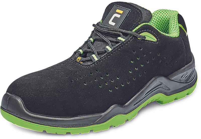 Cerva Halwill Védőcipő (fekete/zöld) MF ESD S1P SRC ESD biztonsági félcipő fémmentes (kompozit) lábujjvédővel és kompozit átszúrás ellen védő köztalppal kétrétegű PU/PU talp innovatív mikroszálas felsőrész perforált felülettel az ideális szellőzésértIdeális a szállítás-logisztika és az autóipar területén dolgozóknakSzabványok: EN ISO 20345 (S1 PS FO SR)Szá