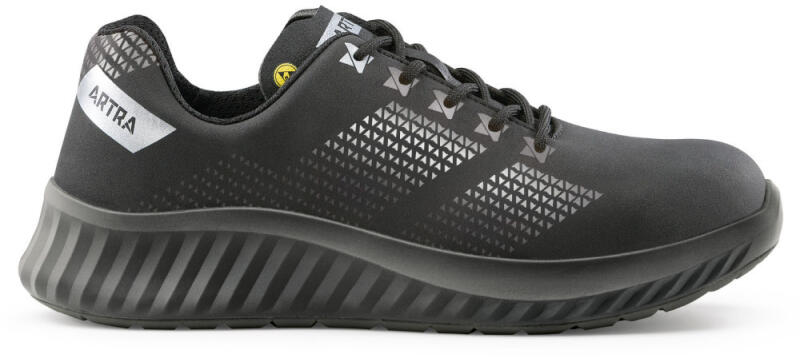 Kiváló légáteresztő képességgel rendelkező ESD-s munkavédelmi cipő hidrofób mikroszálas nubukbőr felsőrésszel és memóriahabos poliuretán talpbetéttel. 100% fémmentes kialakítás. Felsőrész A cipő felső része hidrofób mikroszálas 2.2 mm vastag NUBUCK PRO nubuk bőrből készült, mely kiváló ellenállóképességet biztosít, valamint jó légáteresztő képességgel