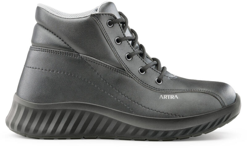Textil bokacsizma acél orrral és fényvisszaverő kiegészítőkkel. Anyaga: strapabíró 1,8 - 2,0 mm-es poliészter felsőrész 30 °C-ig mosható, 3 rétegű lélegző textil bélés, PU-PU, csúszásmentes, olajálló, antisztatikus talp. Méret: 34-48 Védettségi fok: S1 Felső anyag: poliészter Talp: PU - PU Fényvisszaverő kiegészítők: Igen Szín: Fekete