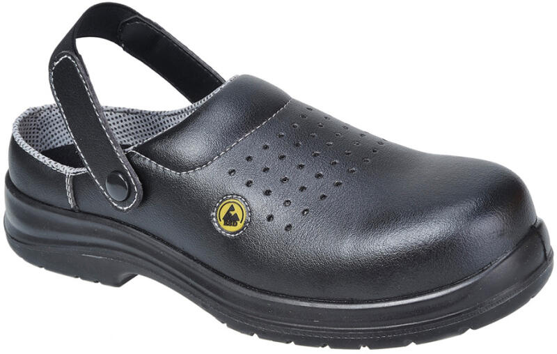 Könnyű biztonsági klumpa perforált felsőrésszel a további légáteresztő képesség érdekében. 100% fémmentes, műanyag szegecses rögzítővel. Alkalmas ESD környezetben történő használatra Megfelel az EN 61340-5-1 szabványnak. Slip-on sziluett Állítható rugalmas sarokpánt Perforált felsőrész segíti a légáramlást meleg környezetben Törölje le a felső részt Öntisz