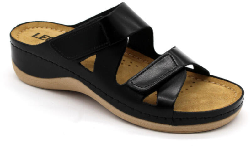 Női bőr nyitott papucs, műanyag csúszásgátlós talppal. Mind a két szíj tépőzárral szabályozható. A talpbetét puha zselés, bőr. Ajánlott: mindennapos utcai használatra, otthonra vagy munkahelyre (több órás, szaladgálós munka alatt sem fárad el a láb). Ez a termékünk rendelkezik minőségi, munkavédelmi bevizsgálással. Belsőrész anyaga: bőr belső Extra tulajdonság