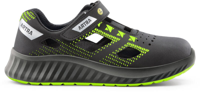 Jól szellőző kényelmes ESD-s munkavédelmi szandál hidrofób mikroszálas nubukbőr felsőrésszel és anatómiailag széles kialakítású acél orrmerevítővel. Felsőrész A cipő felső része hidrofób mikroszálas 2.2 mm vastag NUBUCK PRO nubuk bőrből készült, mely kiváló ellenállóképességet biztosít, valamint jó légáteresztő képességgel rendelkezik, így egész napos