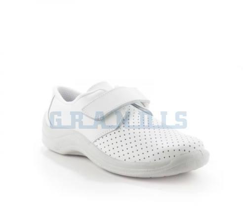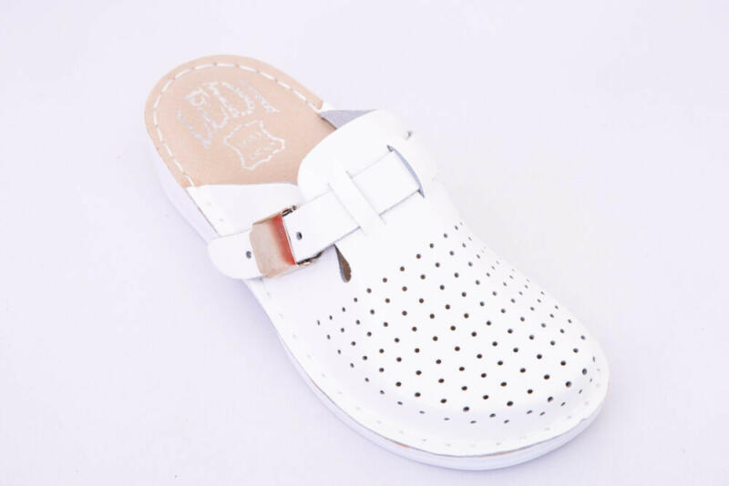 Gyógyklumpa csatos felsőrésszel hölgyeknek, de akár kisebb lábú férfiaknak is. Bőr felsőrésszel és csatos pánttal, melynek köszönhetően jól alkalmazkodik minden lábformához. Anatómiailag tervezett, könnyű és kopásálló PU talp és puha bőrből készült belső talpbélés gondoskodik a kényelmes és rugalmas járástól. Munkavédelmi ISO 20347:2012 minősítéssel is re
