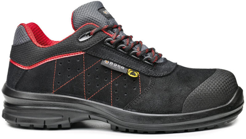 Jól szellőző kényelmes ESD-s munkavédelmi szandál hidrofób mikroszálas nubukbőr felsőrésszel és anatómiailag széles kialakítású acél orrmerevítővel. Felsőrész A cipő felső része hidrofób mikroszálas 2.2 mm vastag NUBUCK PRO nubuk bőrből készült, mely kiváló ellenállóképességet biztosít, valamint jó légáteresztő képességgel rendelkezik, így egész napos