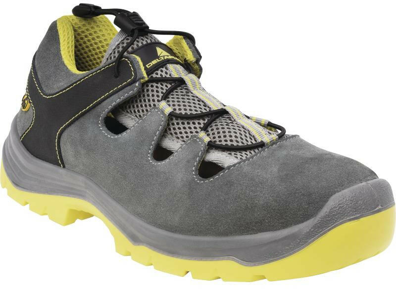 ESD-s szandál hasíték velúrbőr felsőrésszel, SRC csúszásmentes talppal Orrában és a talpában orrkapli és talpátszúrás elleni védőlemez van Felsőrész : Hasíték velúrbőr Bélés : Nedvszívó poliamid Talpbetét : Kivehető előre formázott - EVA-n poliészter Talp : Befecskendezett - Kétrétegű PU Szabványok: EN ISO 20344:2011 Egyéni védőfelszerelés - Cipőre vonatko