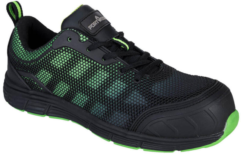 Modern és klasszikus edzőcipő kontrasztos színekkel a stílusos, elegáns megjelenésért. A TPU-formázott felsőrész hálós hátlappal kiváló légáteresztő képességet és kényelmet biztosít. 100% fémmentes, üvegszálas orrmerevítő és talpátszúrás ellen, fémmentes talplemez. Ideális beltéri és kültéri munkavégzésre, például raktári dolgozók, targoncavezetés, sz