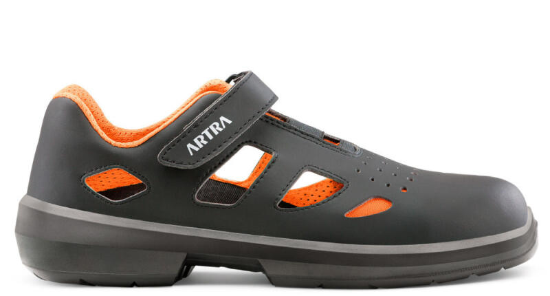 Kiváló szellőzést biztosító munkavédelmi szandál extra széles kompozit orrkaplival, poliuretán memóriahabos talpbetéttel és hidrofób mikroszálas bőr felsőrésszel. 100% fémmentes kialakítás. Felsőrész A cipő felső része hidrofób mikroszálas 2.2 mm vastag INDUSTRY PRO bőrből készült, mely kiváló ellenállóképességet biztosít, valamint jó légáteresztő képess