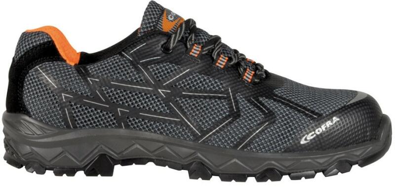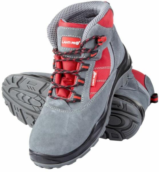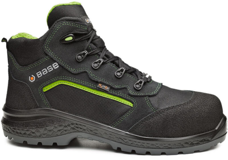 ANYAG: felső része: fordított bőr és Oxford típusú szövet. Textil bélés. Kivehető talpbélés. Talpa: dupla sűrűségű poliuretán, mely csúszásmentességet biztosít a kerámia és acél felületeken. Sarkoknál hajlított, magas oldal a stabilitás és a kényelmes járás érdekében. Acél orrmerevítő és átszúrás elleni talplemez. Zárt sarokrész, antisztatikus tulajdons
