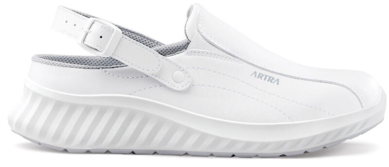 Kényelmes munkavédelmi szandál antibakteriális ezüstion védelemmel, jó légáteresztőképességgel és energiaelnyelő talp résszel. Kiváló választás egészségügyi vagy élelmiszeripari dolgozók számára. Felsőrész A cipő felső része hidrofób mikroszálas 2.2 mm vastag MICRO PRO bőrből készült, mely kiváló ellenállóképességet biztosít, valamint jó légáteresztő