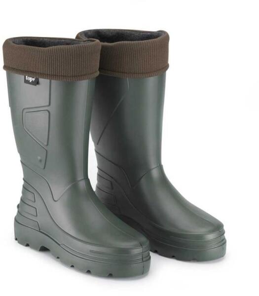 TOP RINDAL extra könnyű EVA hab csizma, normál, magasított szárral és SRB csúszásbiztos talppal. Tulajdonságok:Anyaga: extra könnyű EVA hab. Talp: SRB csúszásbiztos, rugalmas, energiaelnyelő. Vízálló. Bélés: kivehető és mosható. Bélés nélkül akár nyáron is kényelmes viselet. Kiváló hőszigetelő képesség -30°C -ig. Könnyen tisztítható. Zöld szín. Széles mér