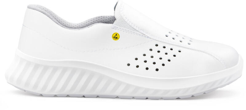 Lyukacsos hidrofób mikroszálas felsőrészének és CLIMAX 3D bélésének köszönhetően kiváló légáteresztő képességgel rendelkezik. Kényelmes ESD-s bebújós cipő, kiváló választás egészségügyi és élelmiszeripari dolgozóknak. Felsőrész A cipő felső része hidrofób mikroszálas 2.2 mm vastag MICRO PRO bőrből készült, mely kiváló ellenállóképességet biztosít,