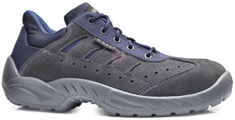 Base S1P munkavédelmi cipő hasított bőr felsőrésszel. Acél orrvédelemmel és kompozit talpátszúrás elleni védelemmel ellátott, ütéscsillapítás a saroknál. Antisztatikus és szénhidrogéneknek ellenálló egyedi kialakítású talp, a férfi és női lábnak megfelelő külön kapli szélességgel is választható. Javasolt felhasználási területek: könnyűipar, mezőgazdaság