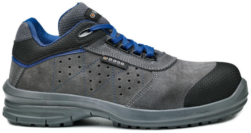 Base S1P munkavédelmi cipő légáteresztő technikai textil felsőrésszel. Alumínium orrvédelemmel és kompozit talpátszúrás elleni védelemmel ellátott, ütéscsillapítás a saroknál. A minél nagyobb tartósság érdekében orrborítással rendelkezik. Antisztatikus és szénhidrogéneknek ellenálló egyedi kialakítású talp, a férfi és női lábnak megfelelő külön kapli szél