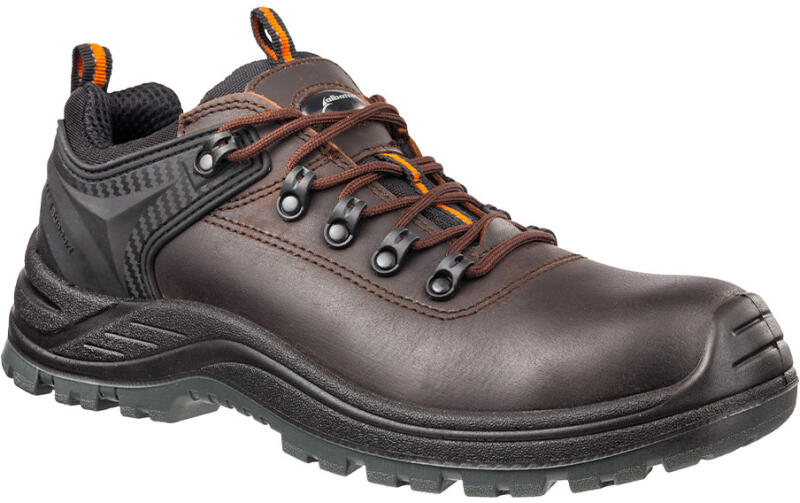 Sportos és modern kialakítású munkavédelmi cipő. A hidrofób mikroszálas nubukbőr felsőrész kiváló légáteresztést biztosít, a láb védelméről extra széles anatómiai kialakítású kompozit orrmerevítő és ERGOFLEX kevlár talplemez gondoskodik. 100% fémmentes kialakítás. Felsőrész A cipő felső része hidrofób mikroszálas 2.2 mm vastag NUBUCK PRO nubuk bőrből kész