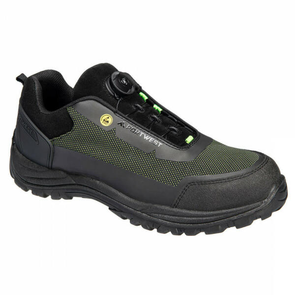 Sportos munkavédelmi félcipő kompozitos orr- és talpvédelemmel Felsőrész : hasíték velúrbőr és lélegző poliészter Bélés: Poliészter. Talpbetét: Kivehető előre formázott - EVA-n poliészter. Talp: Befecskendezett - Kétrétegű Poliuretán anyagból. Antisztatikus cipő EN ISO 20345:2011 Egyéni védőfelszerelés - Védőcipő