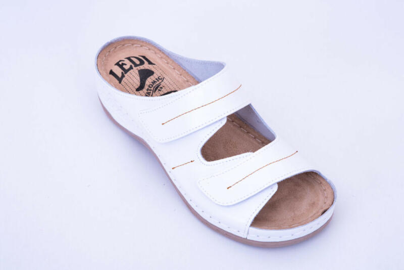 Bőrből készült női papucs, állítható pántokkal. Női papucs kétpántos tépőzárral. Az állítható pántoknak köszönhetően minden lábformához jól igazodik. Fáradt, dagadásra hajlamos lábakra is kiváló választás. Munkavédelmi ISO 20347:2012 minősítéssel is rendelkezik.