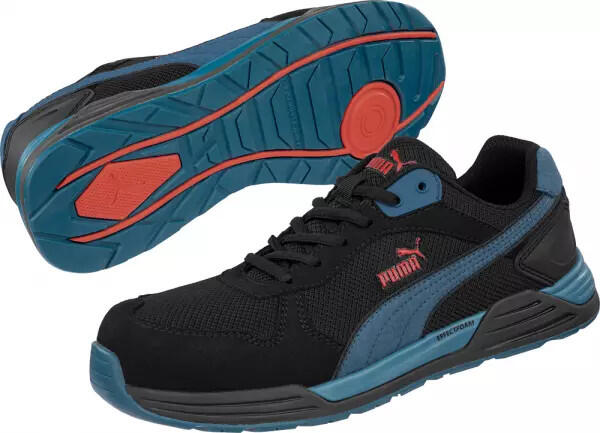 Puma Frontside BLK/BLUE Low S1P ESD HRO SRC munkavédelmi cipő Az új Urban Effect család tagja Üvegszálas orrmerevítő vel és hajlékony, továbbfejlesztett (FAP® lite) extrém szakadásbiztos kompozit talpátszúrás elleni védelemmel ellátott munkavédelmi lábbeli. Textilhálós, mikroszálas felsőrész. Lélegző bélés és új evercushion® CUSTOM FIT MID talpbetét, ami még maga