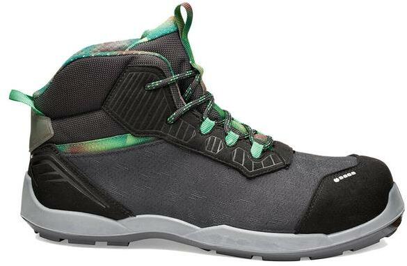 Base S1P újrahasznosított anyagokból készített védőlábbeli. 200 Joule-nak ellenálló kapli, talpátszúrás elleni védelem, ütéscsillapítás a saroknál, antisztatikus lábbeli, ESD védelem, szénhidrogének ellenálló talpszerkezet, méretre készült ortopédiai talpbetét, amely megfelel az európai normáknak DGUV112-191, fémmentes kivitel, mérettől függően férfi és női