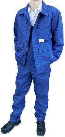 5SSMR220 Folyékony vegyszerek elleni melles öltöny 245 g/m2 kopásálló, sávoly kötésű, 65% poliészter, 35% pamut alapanyag folyadéklepergető védőruházat, korlátozott védelmet nyújt kisnyomású vagy fröccsenő, folyékony vegyszerek ellen (pl. kénsav, lúg, o-Xilol és butanol) – 6. típusú és PB (6) típusú védőeszköz biztonsági kettős lánc-, plusz háromfonalas sze