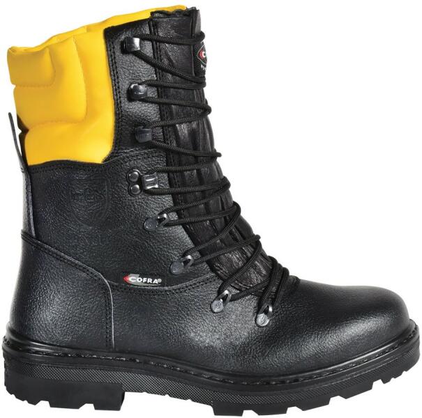 FEKETE/SÁRGABŐR BAKANCS/SYNTHET. SZÖVET/APT TALPLEMEZ-CLASS-1 MODELLCSALÁD JELLEMZŐI: Speciális védőlábbelik FELSŐ: Fekete vízleperget préselt bőr vágás elleni védelemmel CLASS 1 védelmi osztály, 1. VÉDELMI SZINT láncfűrész sebessége = 20m/s BÉLÉS: Lélegző TEXELLE bélés TALPBETÉT: EVANIT kényelmi talpbetét TALP: Kétrétegű PU/TPU talp TALPLEMEZ: APT talplemez VÉD
