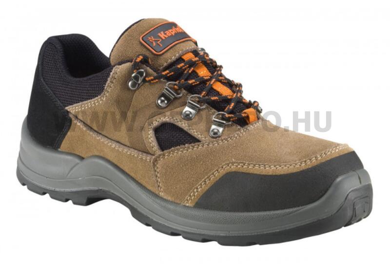 Sportos és modern kialakítású munkavédelmi cipő lyukacsos felsőrésszel. A hidrofób mikroszálas nubukbőr felsőrész kiváló légáteresztést biztosít, a láb védelméről extra széles anatómiai kialakítású kompozit orrmerevítő és ERGOFLEX kevlár talplemez gondoskodik. 100% fémmentes kialakítás. Felsőrész A cipő felső része hidrofób mikroszálas 2.2 mm vastag NUBUCK