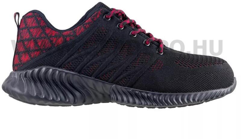 Urgent Fino 246 S1 munkavédelmi félcipő, fekete/piros - 44 Felsőrész: textil. Bélés: szövet, párnázott bokarész. Talpbetét: szövet. Talp: SRA, antisztatikus, energiaelnyelő sarok, EVA/gumi. Orrmerevítő anyag: acél. Norma: EN 20345:2011. Védelmi szint: SB - Orrmerevítővel, mely megvéd a 200 J energiájú zuhanó, leeső tárgyak ellen és 15 kN nyomás elleni védelmet biztosí
