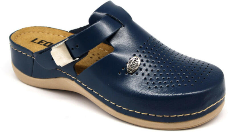 Munkavédelmi tanúsítvánnyal rendelkező kényelmes női klumpa. Női bőr klumpa, műanyag csúszásgátlós talppal. Oldalt fém csat található, amellyel szabályozni lehet a bőséget. A talpbetét puha zselés, bőr. A természetes anyagnak és a felsőrész lyukacsosságának köszönhetően, jól szellőzik. Ajánlott: mindennapos utcai használatra, otthonra vagy munkahelyre (több ór
