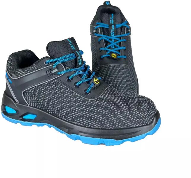 Mezitlábas érzetet biztosító könnyű, lélegző, extrém rugalmas munkacipő extra-széles, stabil, 200 J-ig ütésálló szénszálas kaplival. Talpátszúrás elleni védelem: extra rugalmas és extra könnyű speciális kevlár. Cipőfelsőrész: kopásálló, a lábhoz jól illeszkedő puha, kiválóan lélegző mikroszál, az orrán TPU megerősítés. Bélés: hűvös hálós textil kiv