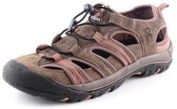 Légáteresztő szabadidős bőrcipő textil kiegészítőkkel, nyitott. Felsőrész anyag marhabőr, bélés textil, talprész gumi.