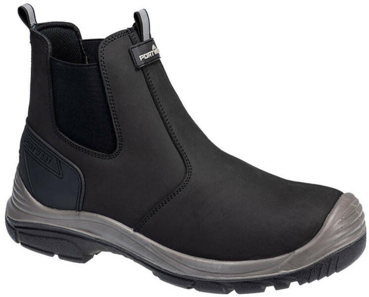Portwest FV02 üzemanyagálló munkavédelmi bakancs A stílus, a védelem és a funkcionalitás ötvözésével ez a bakancs vízálló membránnal rendelkezik, amely kiváló védelmet biztosít nedves körülmények között. A talpszerkezet támaszt és védelmet nyújt a viselőjének. Acél orrmerevítő és átszúrás elleni talplemez. A cipő elülső és hátsó húzófülekkel rendelkez