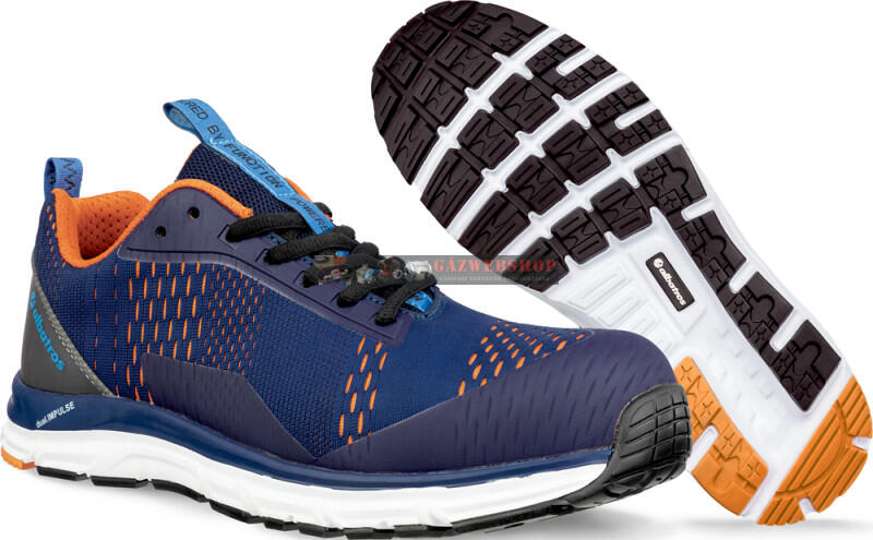 647510 Albatros Védőcipő - AER55 Impulse Blue Orange Low S1P ESD HRO SRA Üvegszálas orremerevítővel és rugalmas, FAP® kompozit talpátszúrás elleni védelem ellátott munkavédelmi cipő. Safety Knit egybeszőtt felsőrész, FITFRAME® megerősítésekkel (varrás nélküli megerősítés). További extrák: ESD, fémmentes, extrém könnyű súly, lélegző belső bélés, anatómiaila