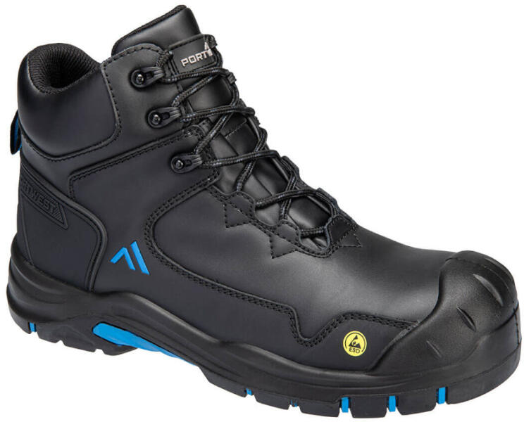 Kompozit orrmerevítő Kompozit talpátszúrás elleni talplemez Alkalmas ESD környezetben történő használatra Kétrétegű talpszerkezet Vízálló felsőrész, amely megakadályozza a víz behatolását Antisztatikus lábbeli Hátsó és elülső húzófül a felvétel megkönnyítése érdekében Párnázott cipőnyelv a nagyobb kényelemért Csúszásmentes talp Olaj- és vízálló 100%