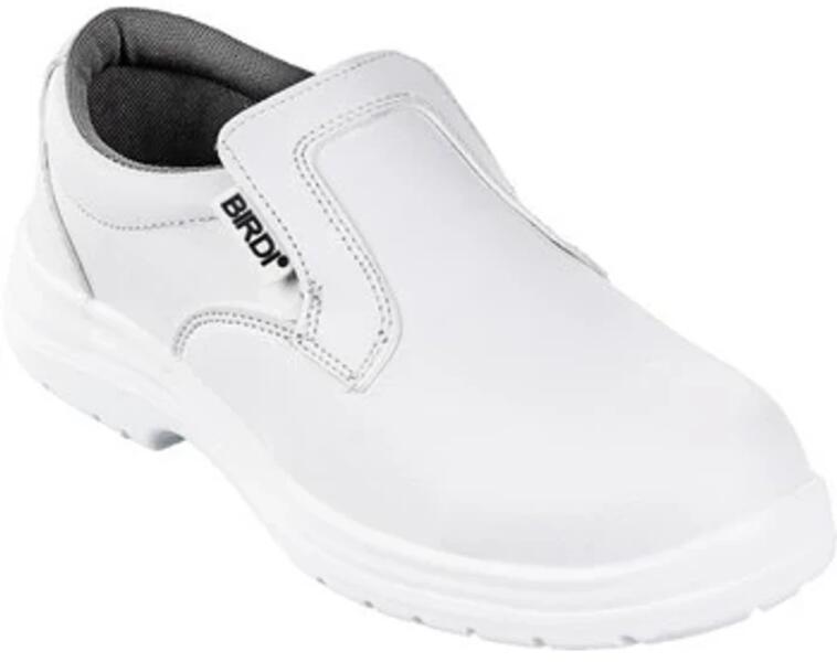Birdi bebújós O2 fehér munkavédelmi cipő jellemzői : bebújós félcipő orrmerevítő nélkül folyadékoknak jobban ellenálló, fehér mikroszálas felsőrész kiváló szellőző, vízgőzáteresztő tulajdonságok antisztatikus, olajálló, hajlékony, kétrétegű, fehér PU talp, ütődéselnyelő sarokkal nedves kerámia és acél felületre bevizsgált, emelt szintű SRC csúszásbi