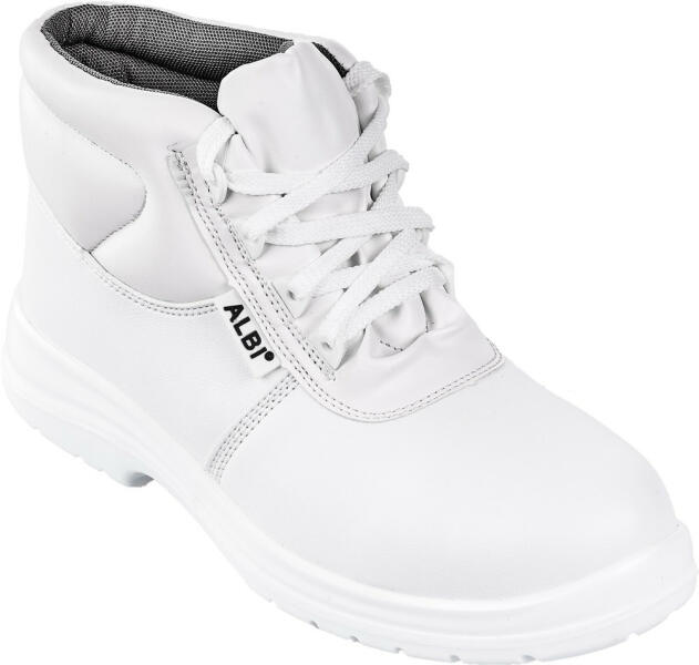 Fehér, kiválóan lemosható, antisztatikus cipő, ESD tulajdonságokkal. A nagyobb kényelemért hosszabb ideig tartó viselet során a cipő az alábbi tulajdonságokkal rendelkezik: ütéscsillapító sarokrész aktív szén tartalmú talpbetét (elnyeli az izzadságot, csökkenti a kellemetlen szagokat) perforált felsőrész a jobb szellőzésért A cipőtalp csúszásgátló SRC tulajdonsá