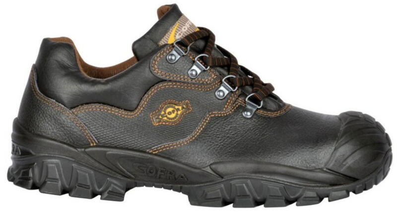 FEKETE BŐR FÉLCIPŐ/BARNA SZÖVET/ACÉL TALPLEMEZMODELLCSALÁD JELLEMZŐI: Strapabíró és kényelmes védőlábbelik acél kaplival és talplemezzel. TALP: Kétrétegű poliuretán talp. Csúszásmentes kialakítás (SRC), energiaelnyelő sarokrész (E), antisztatikus tulajdonságok (A), szénhidrogénekkel (pl. olajjal) szembeni ellenállás. KÉNYELMI TALPBETÉT: EVANIT anatómiai kialakít
