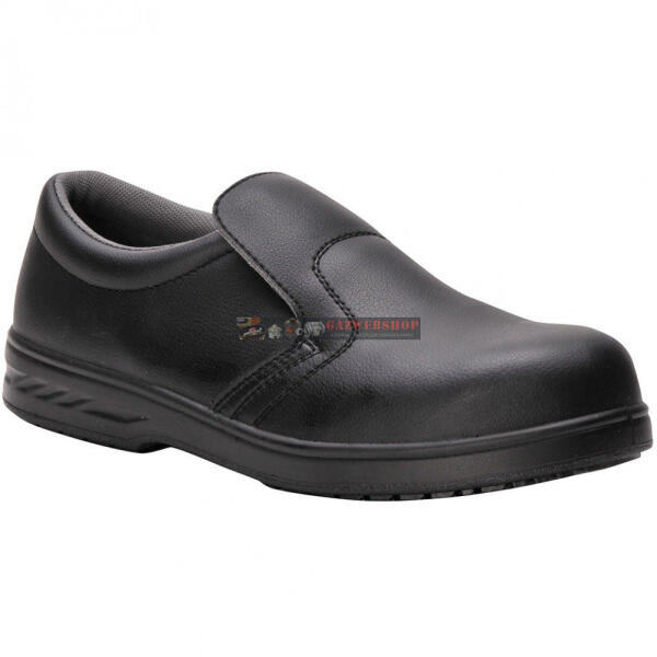 Portwest FW81 Belebújós Védőcipő S2 Az élelmiszeripar számára kifejlesztett, klasszikus stílusú, praktikus és strapabíró védőlábbeli, szivacsbetétes nyelvvel. Microfibre vízálló és gépileg mosható (30 o C) felsőrésszel, egyrétegű, szuperkönnyű PU öntisztító, csúszásmentes talppal. Öntisztító talp, mely megakadályozza a szennyeződések lerakódását Párnázo