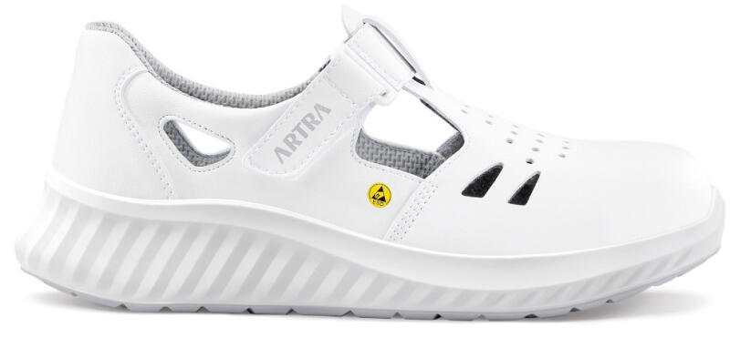Kényelmes, jól szellőző ESD-s munkavédelmi szandál hidrofób mikroszálas felsőrésszel. Tökéletes választás egészségügyi és élelmiszeripari dolgozóknak. A láb védelméről acél orrkapli gondoskodik. Felsőrész A cipő felső része hidrofób mikroszálas 2.2 mm vastag MICRO PRO bőrből készült, mely kiváló ellenállóképességet biztosít, valamint jó légáteresztő k