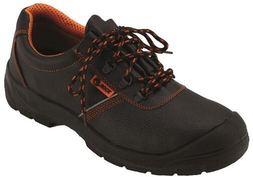 Munkavédelmi félcipő, bakancs, szandál, Marhabőr felsőrész, Acélkpaplis (200J), talplemezes, Olajálló, SRC csúszásmentes kétrétegű PU fröccsöntött talp, Felhúzott orr a nagyobb kopás ellen, Külső oldalon fényvisszaverő csík, Párnázott nyelv